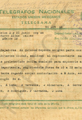Mensaje recibido de un telegrama que no contiene el expediente. Dimas Anguiano es Presbítero de la Parroquia de Cristo en México, D.F.
