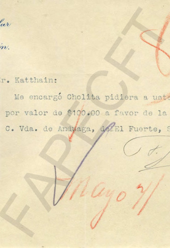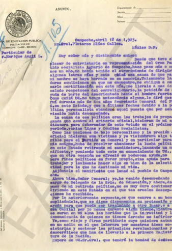 Correspondencia entre Enrique Angli y el Gral. PEC. El primero le pide protección.