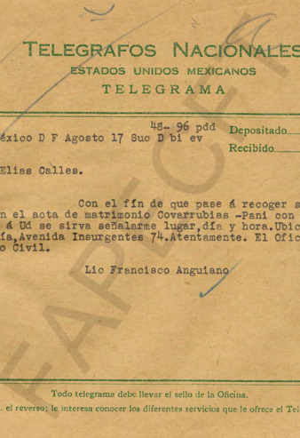 Se pide al Lic. Francisco Anguiano pase a recoger la firma que falta en el acta de matrimonio Covarrubias-Pani.