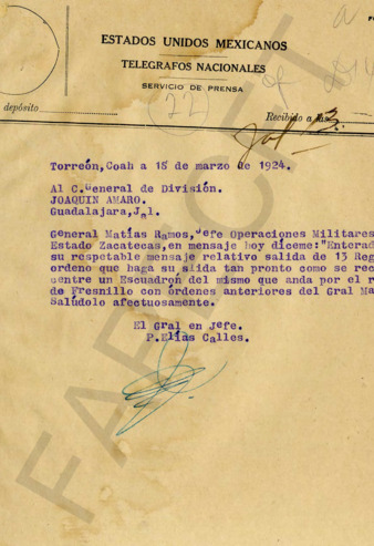 El Gral. Juan Gualberto Amaya, encargado del 23o. Regimiento, transcribe al Gral. PEC un mensaje dirigido al Jefe de Operaciones Militares en Tamaulipas. Sospecha que el Corl. José María Dávila, Jefe del 3er. Regimiento de San Luis Potosí, da salvoconductos indebidamente. El Gral. Amaya felicita al Gral. PEC por su regreso al país, luego del viaje como Presidente electo. Asimismo, le liquida doscientos pesos que le adeudaba. Memorándum relacionado con los antecedentes de la cuestión religiosa en el estado de Puebla.