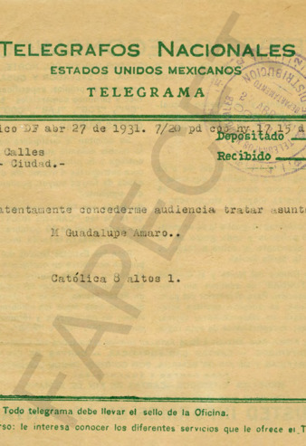 La American Federation of Labor pone a consideración del Gral. PEC un proyecto para una campaña "Pro-México" en los Estados Unidos "para la creación de un ambiente favorable para la República Mexicana".