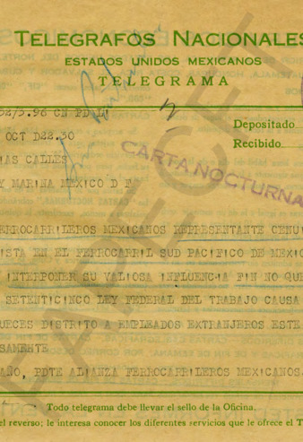 Solicitud de audiencias de la Alianza Mexicana de Trabajadores. El Sindicato de Trabajadores del Petróleo de Minatitlán expone ante el Gral. PEC los motivos por los que fueron a la huelga; también solicita víveres para sostener su movimiento. Los trabajadores de la Compañía Mexicana de Petróleo "El Aguila", en huelga, solicitan ayuda económica o en especie al Gral. PEC. Boletín de la Alianza Nacional de Trabajadores Unificados en el cual manifiestan que, aunque están en contra de la agitación laboral que prevalece en el país, no se consideran de filiación callista. Se declara independiente.