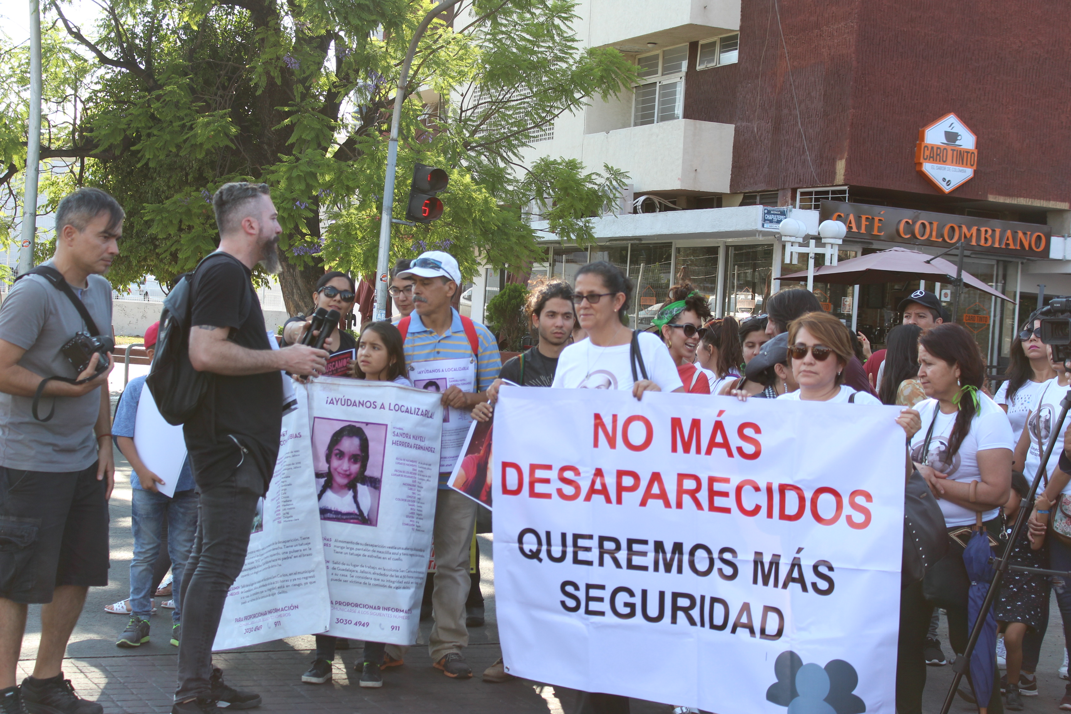 Fotografía del 22 de junio de 2019 donde algunas de las familias de las más de 8 mil 600 personas que han sido desaparecidas en Jalisco, reinstalaron sus lonas de búsqueda en la Glorieta de las y los Desaparecidos de Jalisco. En la imagen familiares de personas desaparecidas exigen más seguridad.