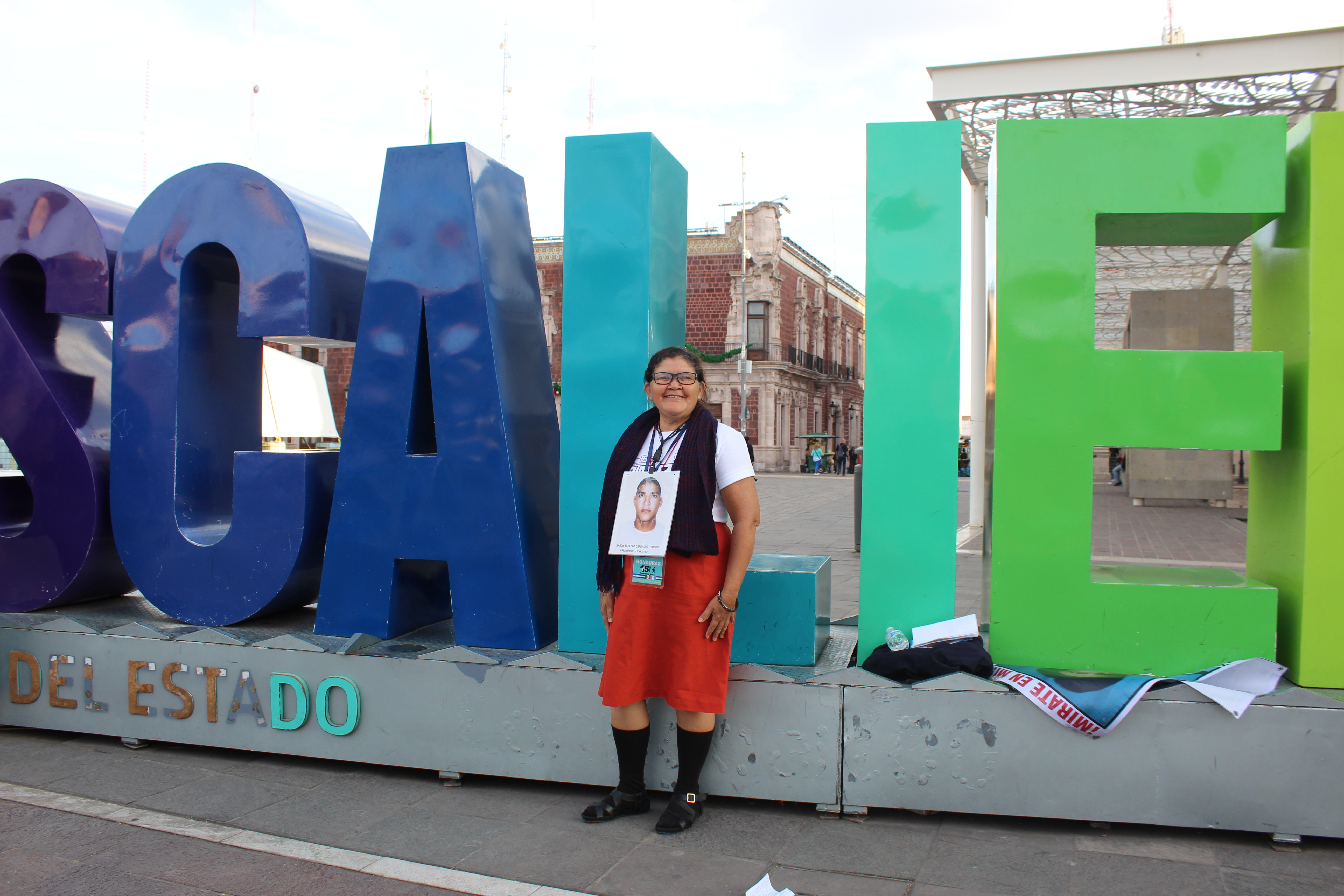 Fotografía del paso de las madres centroamericanas por Aguascalientes y Morelia en donde exigieron a las Comisiones de Búsqueda incluir en sus acciones y discursos a los migrantes desaparecidos. En la imagen una de las integrantes de la XV Caravana en Aguascalientes.