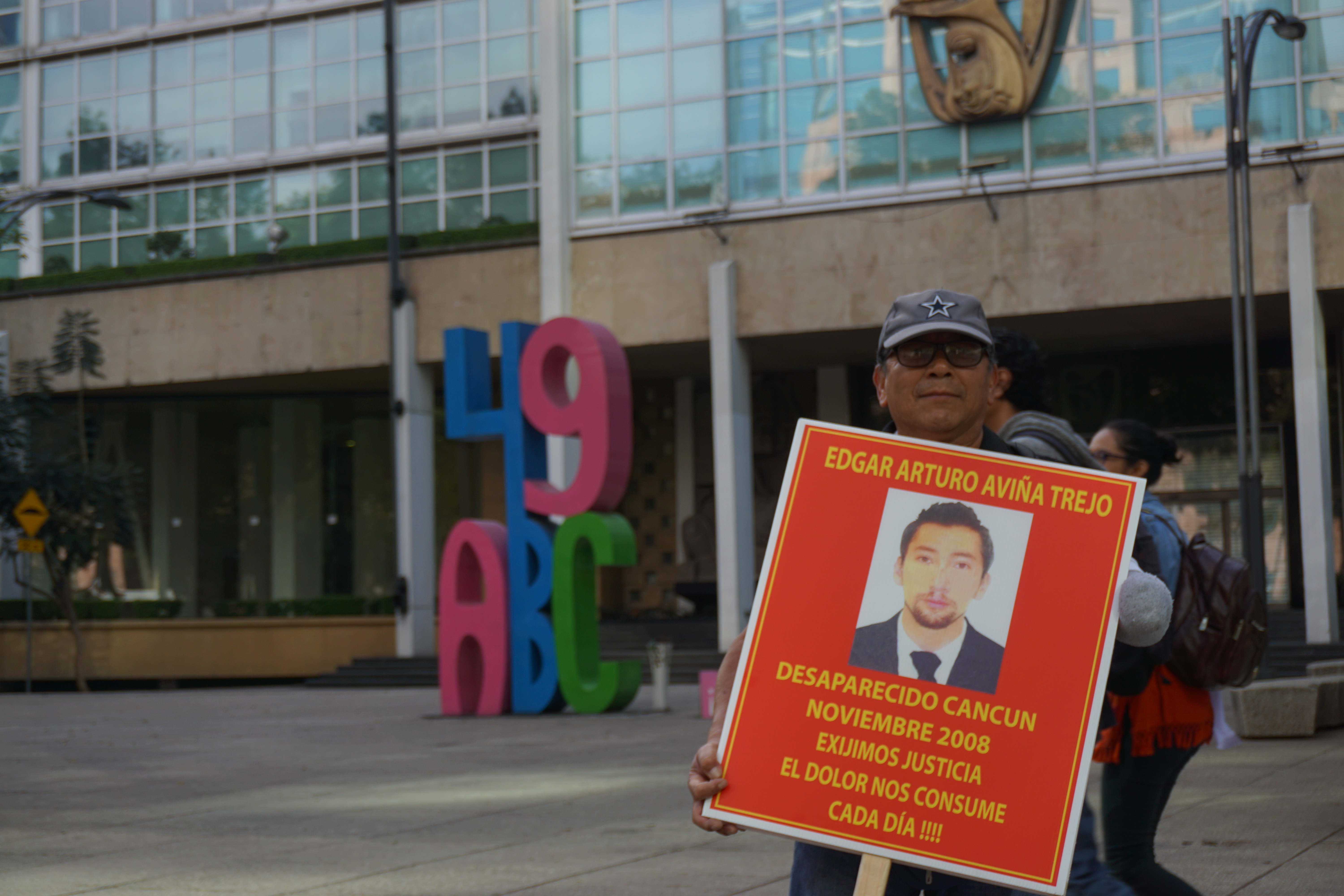 Fotografía de la Caminata por la Verdad, Paz y Justicia convocada por Javier Sicilia y la familia LeBarón que partió de Cuernavaca, Morelos y culminó en el Zócalo de la Ciudad de México. En la imagen exigen justicia por Edgar Arturo Aviña Trejo.