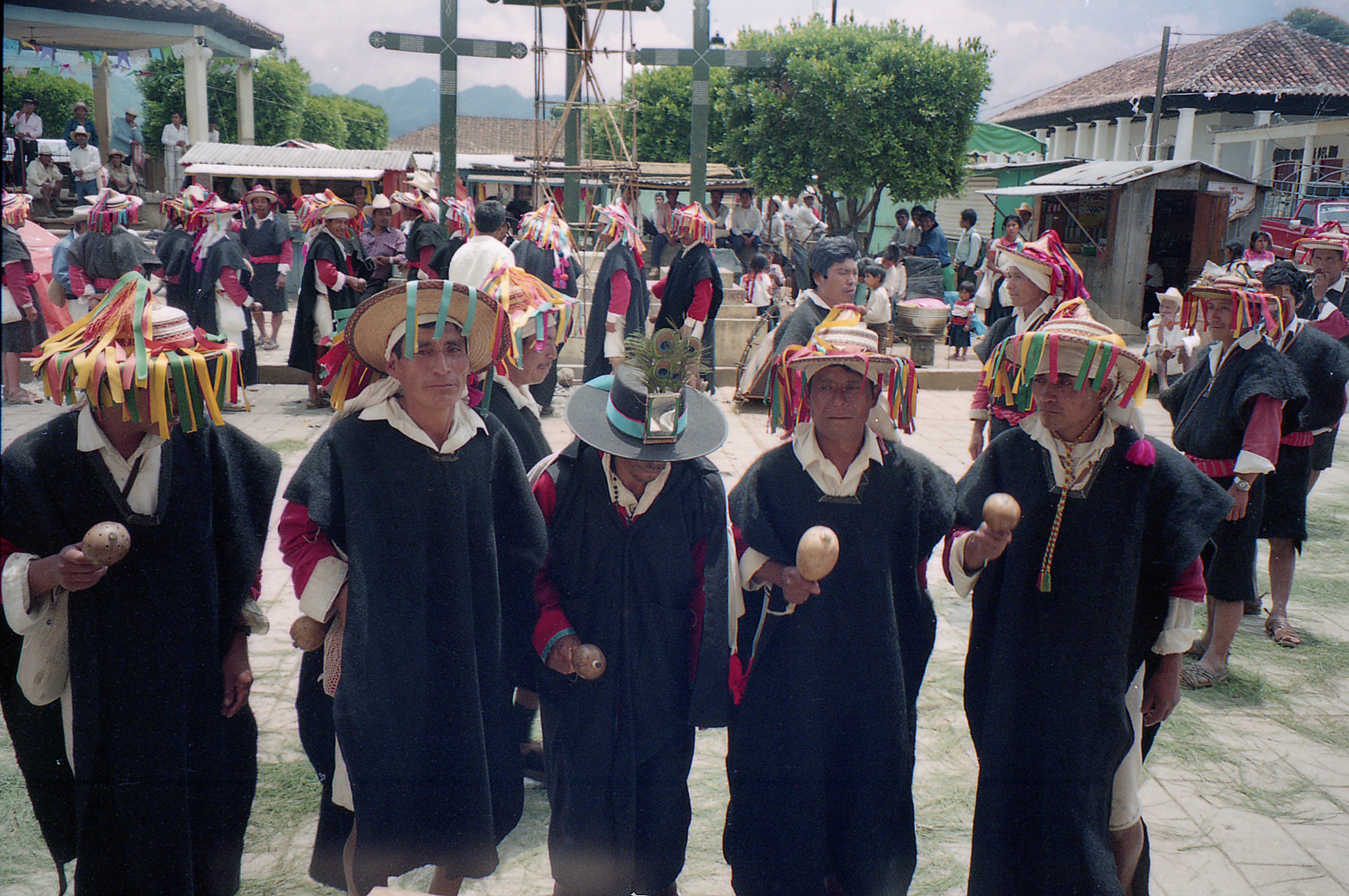 Alféreces bailan frente al Templo de San Andrés Apostol, San Andés Larraínzar