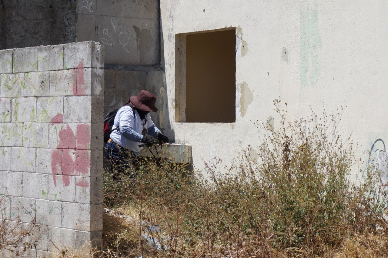 Fotografía de una madre buscadora inspeccionando el patio de una casa abandonada en la colonia Chulavista durante la Segunda Brigada de Madres Buscadoras de Jalisco. La imagen fue capturada por Dalia Souza en la búsqueda de los días 1,2 y 3 de abril de 2022.