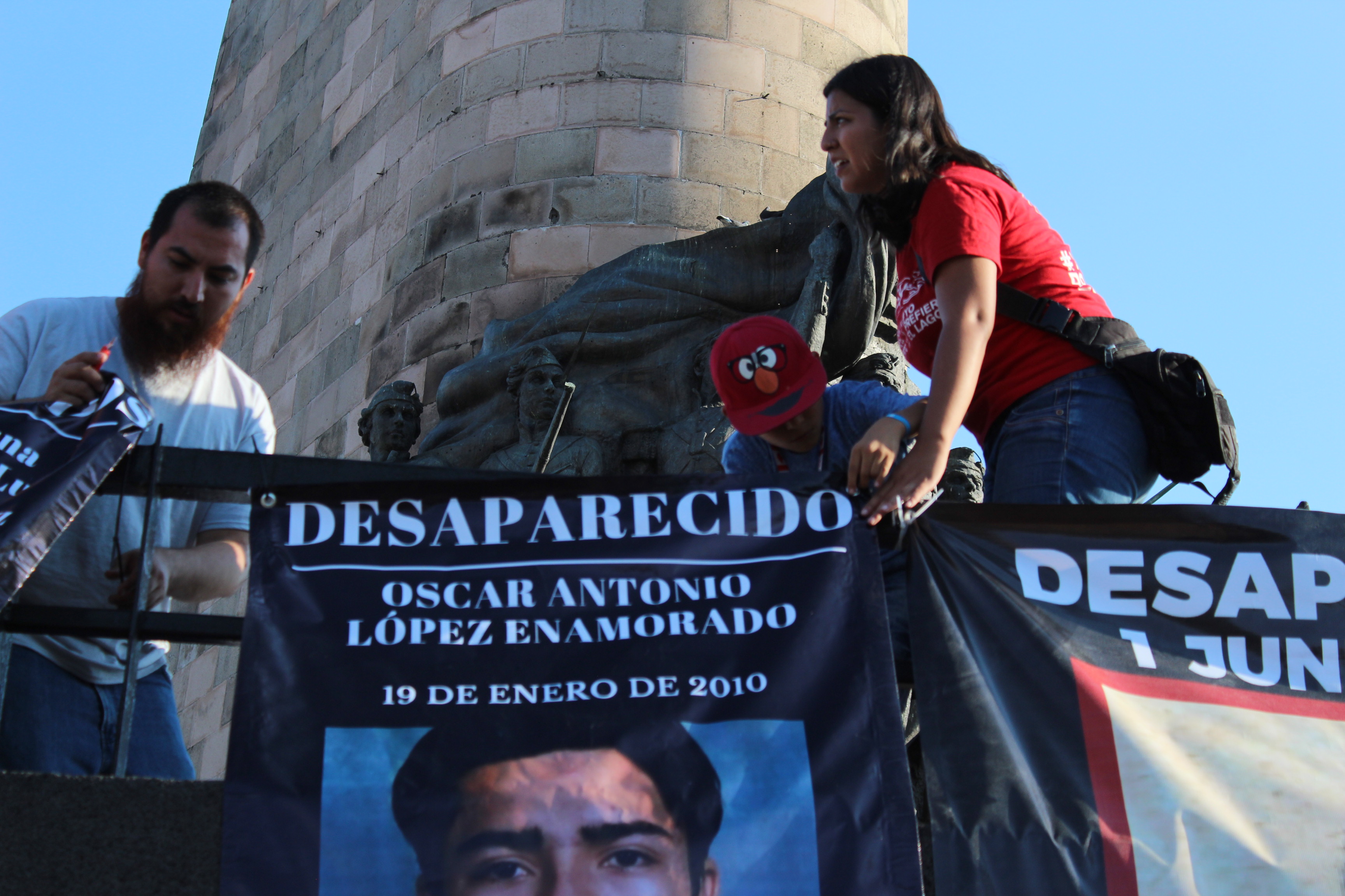 Fotografía del 22 de junio de 2019 donde algunas de las familias de las más de 8 mil 600 personas que han sido desaparecidas en Jalisco, reinstalaron sus lonas de búsqueda en la Glorieta de las y los Desaparecidos de Jalisco.