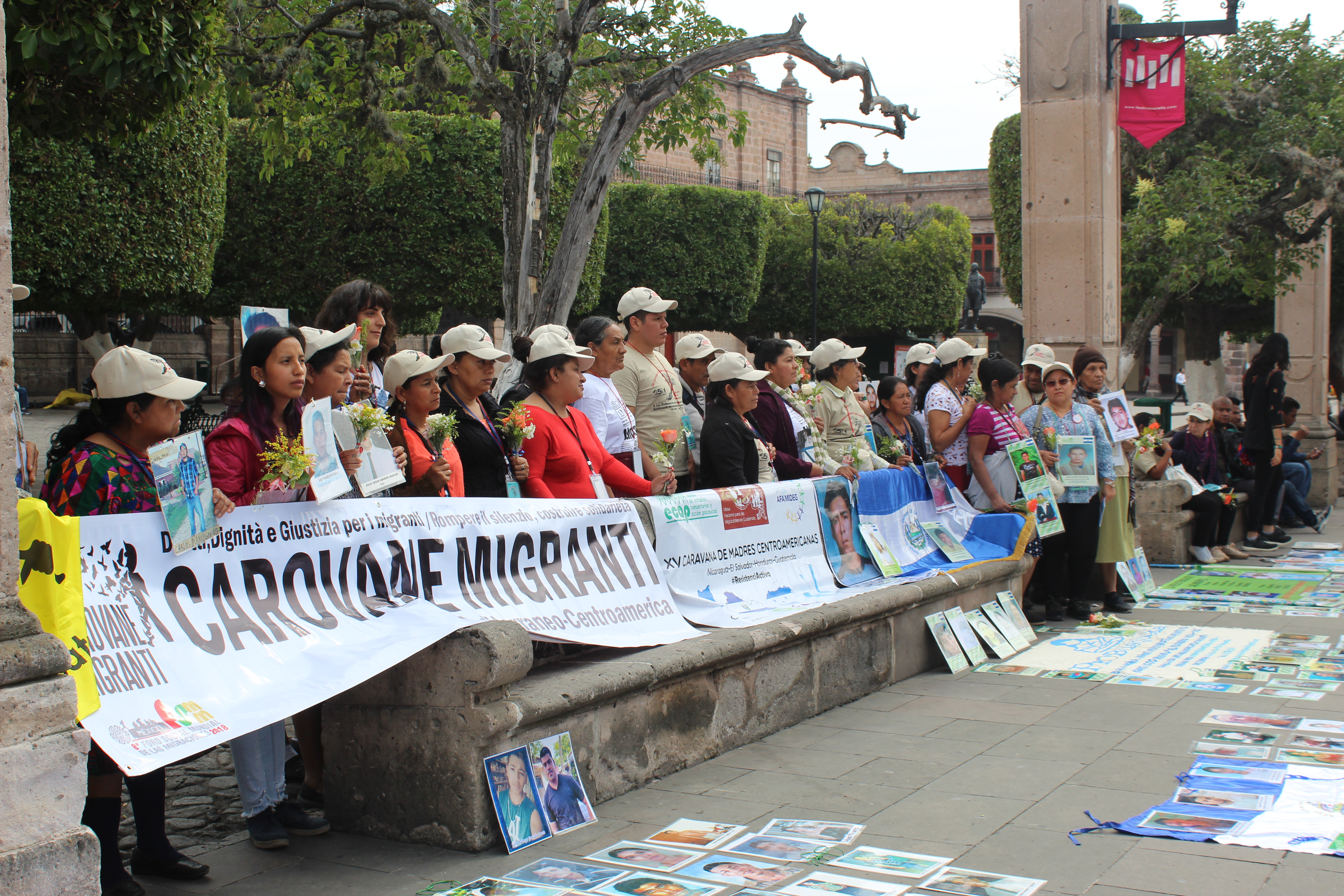 Fotografía del paso de las madres centroamericanas por Aguascalientes y Morelia en donde exigieron a las Comisiones de Búsqueda incluir en sus acciones y discursos a los migrantes desaparecidos. En la imagen los participantes de la XV Caravana en Morelia.