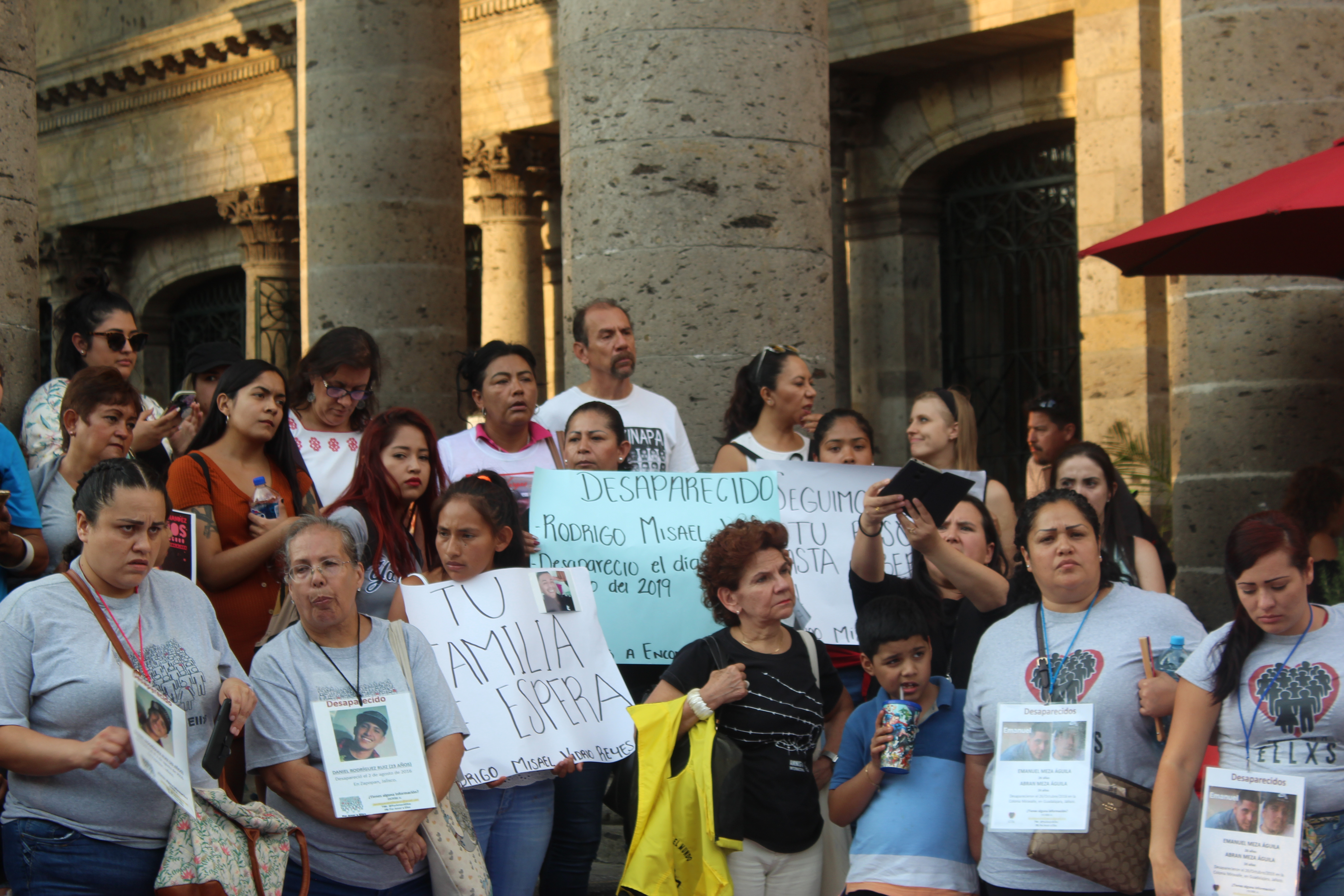 Fotografía de la concentración realizada por el colectivo Por Amor a Ellxs junto con otros colectivos y organizaciones afuera del Teatro Degollado para exigir justicia por sus familiares desaparecidos con motivo del Día Internacional de Víctimas de Desaparición Forzada el 30 de agosto de 2019.