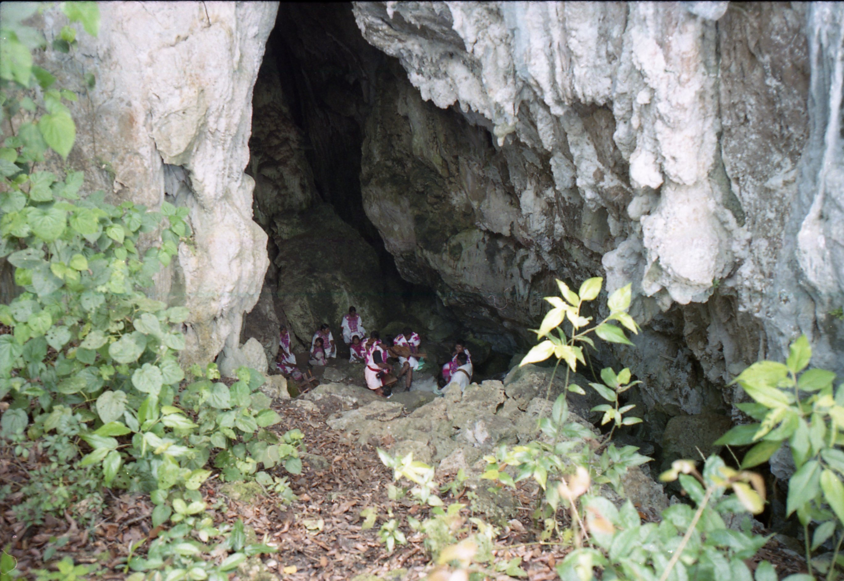 Rezadores de los cerros en una grieta de Pat Puz, San Juan Cancuc