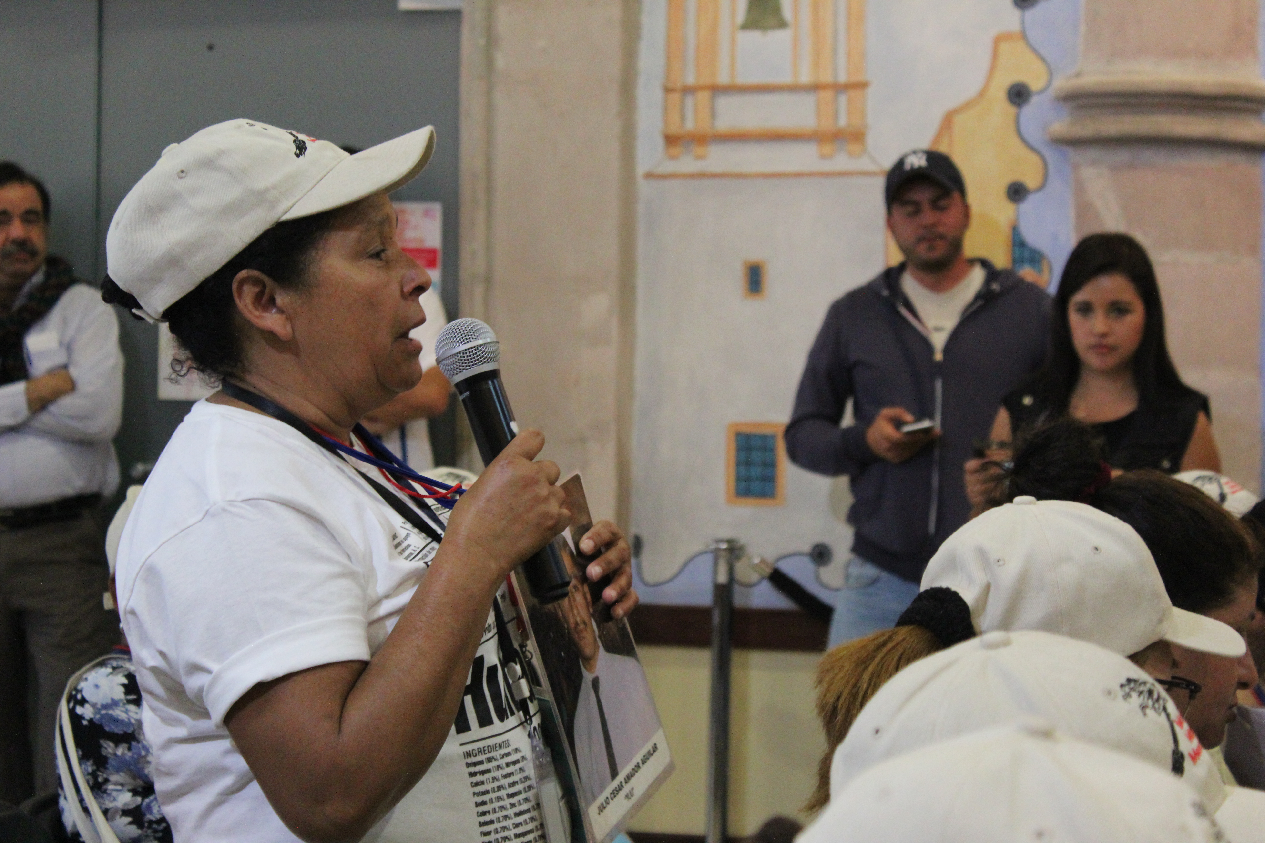 Fotografía del paso de las madres centroamericanas por Aguascalientes y Morelia en donde exigieron a las Comisiones de Búsqueda incluir en sus acciones y discursos a los migrantes desaparecidos. En la imagen madres en las instalaciones del Poder Legislativo de Aguascalientes.