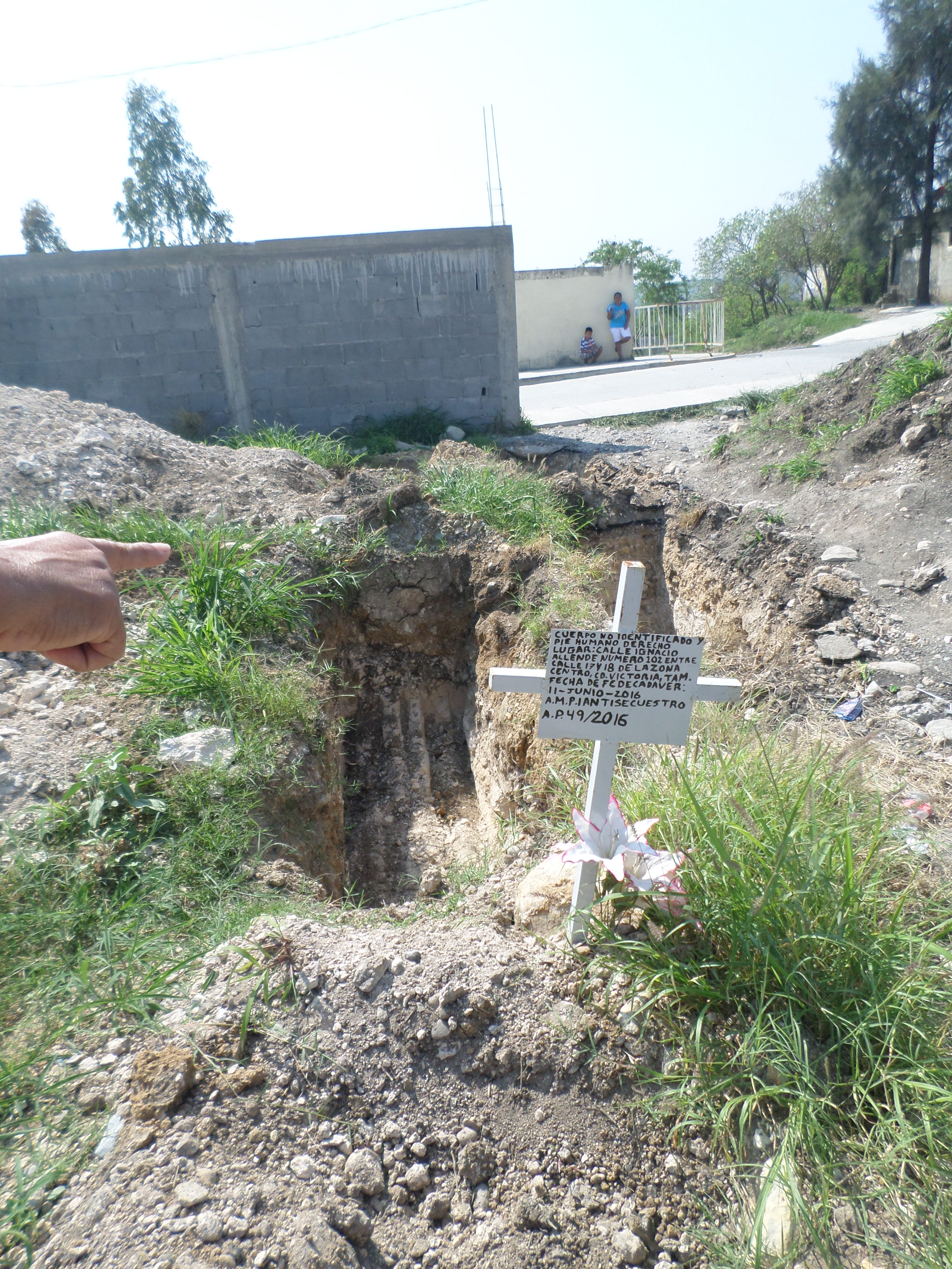 Fotografía de una tumba sin nombre en una fosa común del panteón de Ciudad Victoria, Tamaulipas