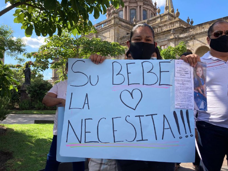 Fotografía de familiares exigiendo justicia por Abigail Fernández Robles, desaparecida tras salir de su trabajo en una agencia automotriz ubicada en Avenida Américas en Guadalajara, el 14 de septiembre de 2021. En la imagen la marcha convocada que partió de Palacio de Gobierno a la Glorieta de las y los Desaparecidos de Jalisco.
