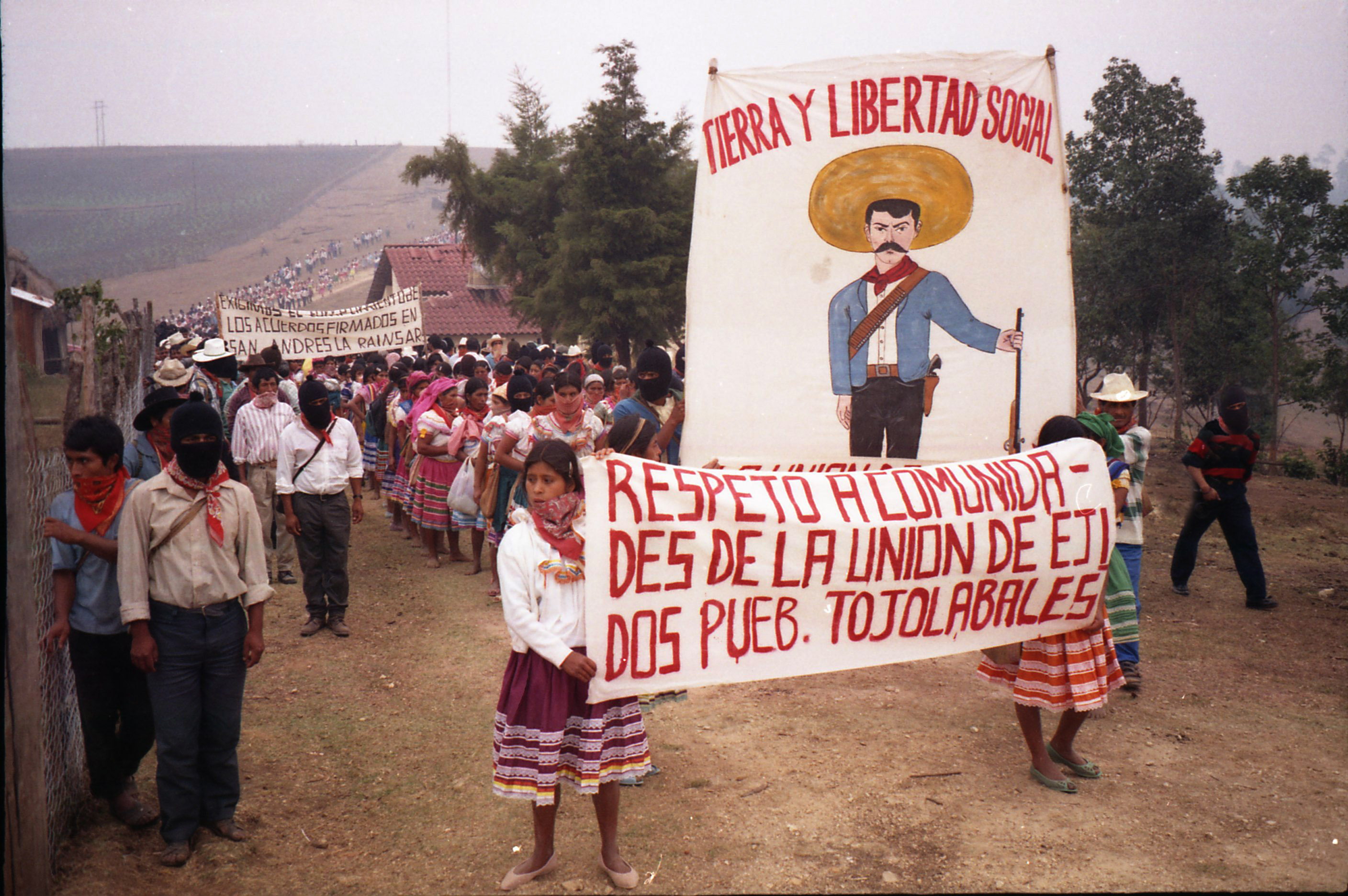 Marcha de pueblos tojolabales para exigir el cumplimiento de los acuerdos de San Andrés Larraínzar. 1