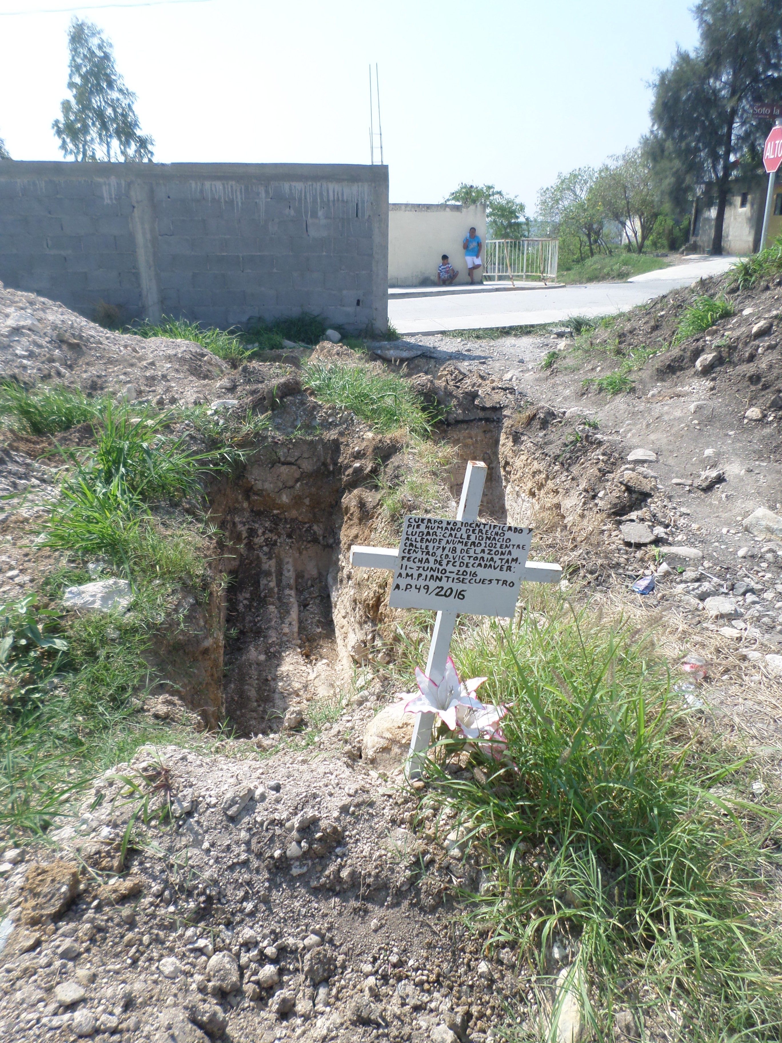 Fotografía de una tumba sin nombre en una fosa común del panteón de Ciudad Victoria, Tamaulipas