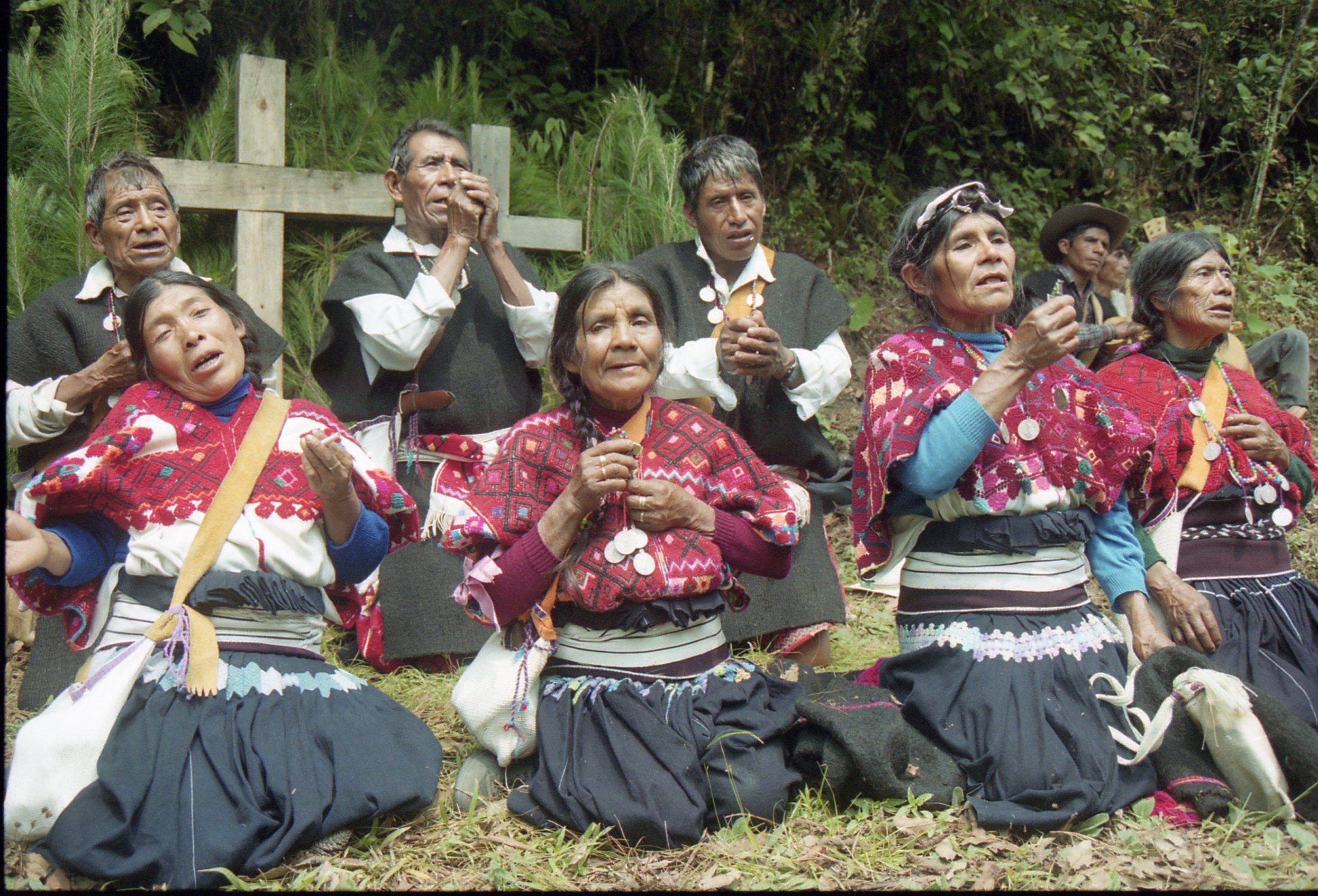 Rezadoras y rezadores ante dos cruces, Tenejapa. 5