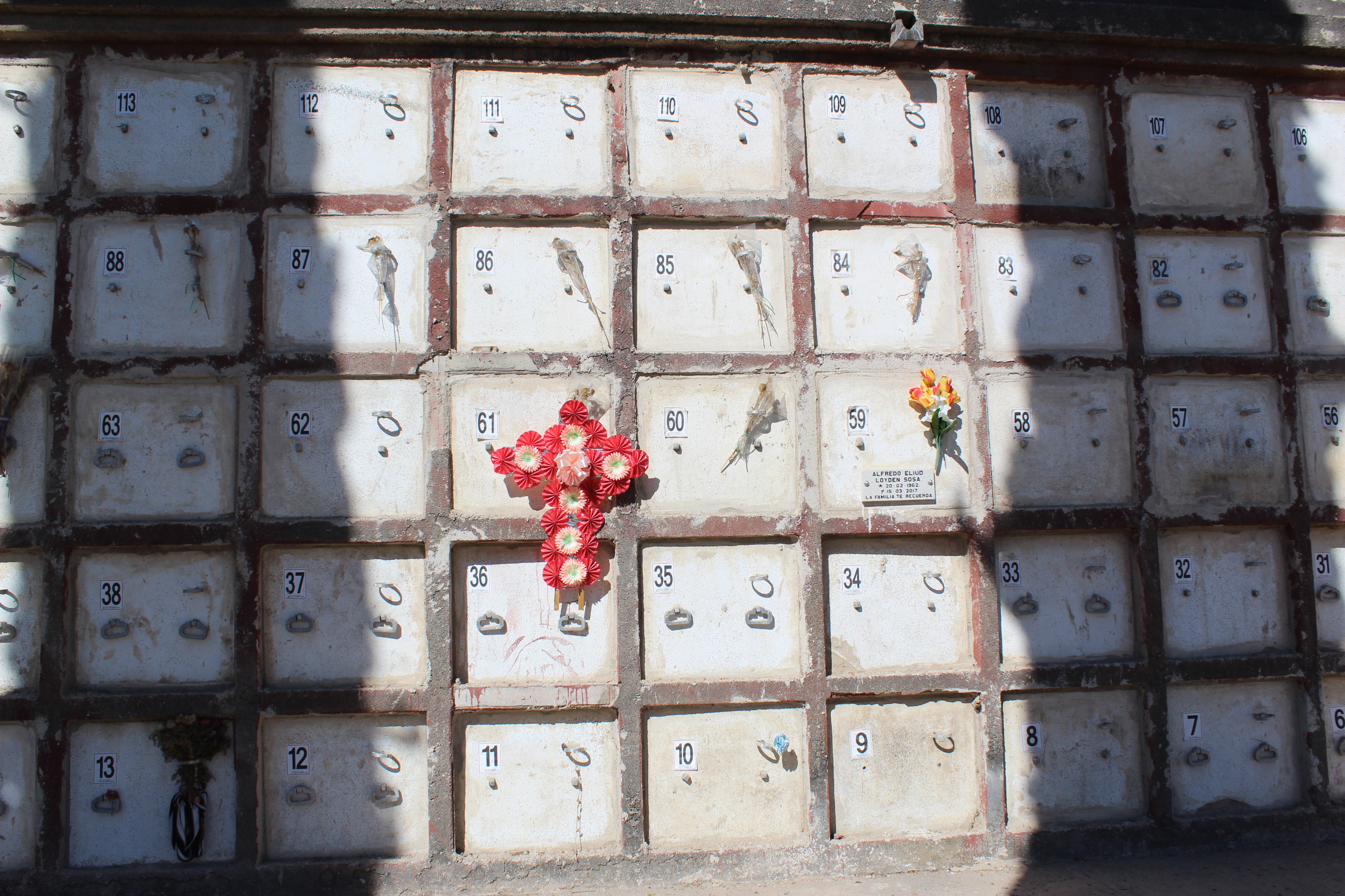 Fotografía que muestra las gavetas destinadas a los cuerpos inhumados no identificados o reclamados en el Panteón Guadalajara. En Jalisco se han realizado inhumaciones sin control en diversos panteones municipales.
