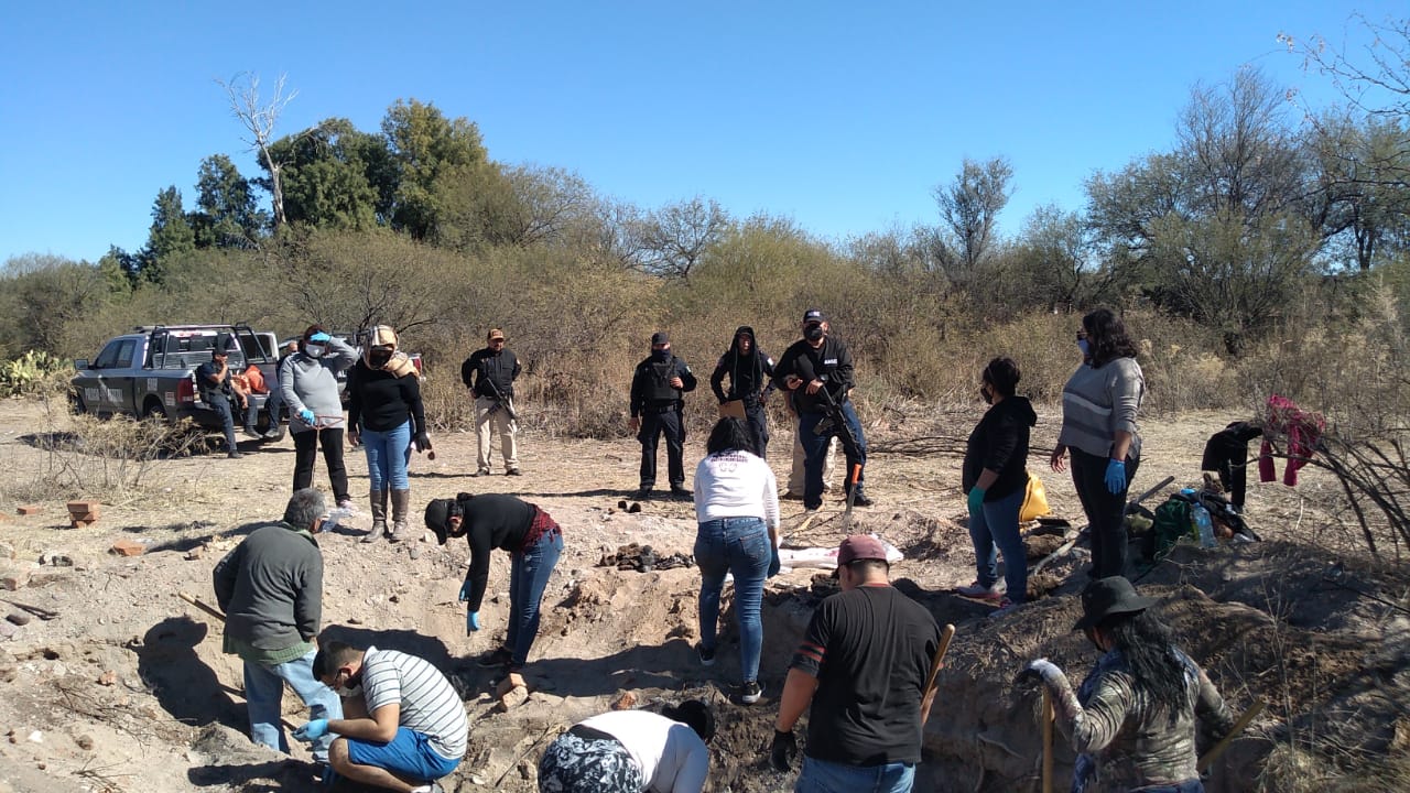 Fotografía de familias buscando en campo a sus seres desaparecidos. La imagen fue capturada por Leslie Zepeda la Primera Brigada de Búsqueda en Jalisco.