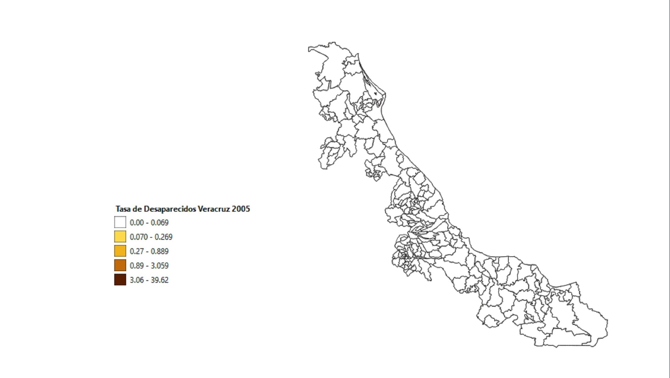 Mapa de la tasa de desaparecidos Veracruz 2005