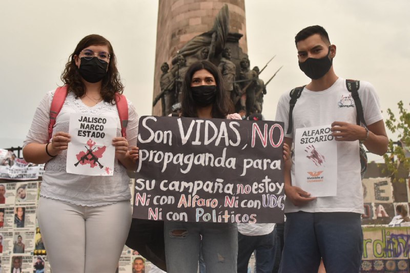 Fotografía de los miles de participantes que fueron convocados a la marcha para exigir justicia tras la desaparición y asesinato de Ana Karen, Luis Ángel y José Alberto González Moreno desde la Rectoría de la Universidad de Guadalajara hasta la Glorieta de las y los Desaparecidos de Jalisco. En la marcha se unieron no sólo estudiantes sino también familiares en busca de sus desaparecidos.