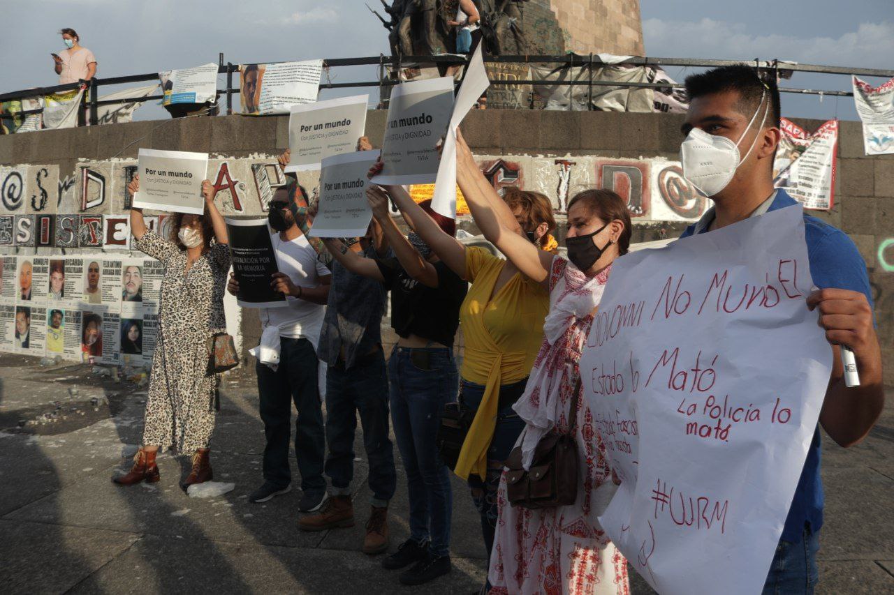 Fotografía de manifestantes en la Glorieta de las y los desaparecidos de Jalisco. Las acciones del 5 de junio se realizaron en memoria de por los hechos ocurridos en 2020 en donde más de 100 personas fueron desaparecidas forzadamente por los miembros del estado de Jalisco.